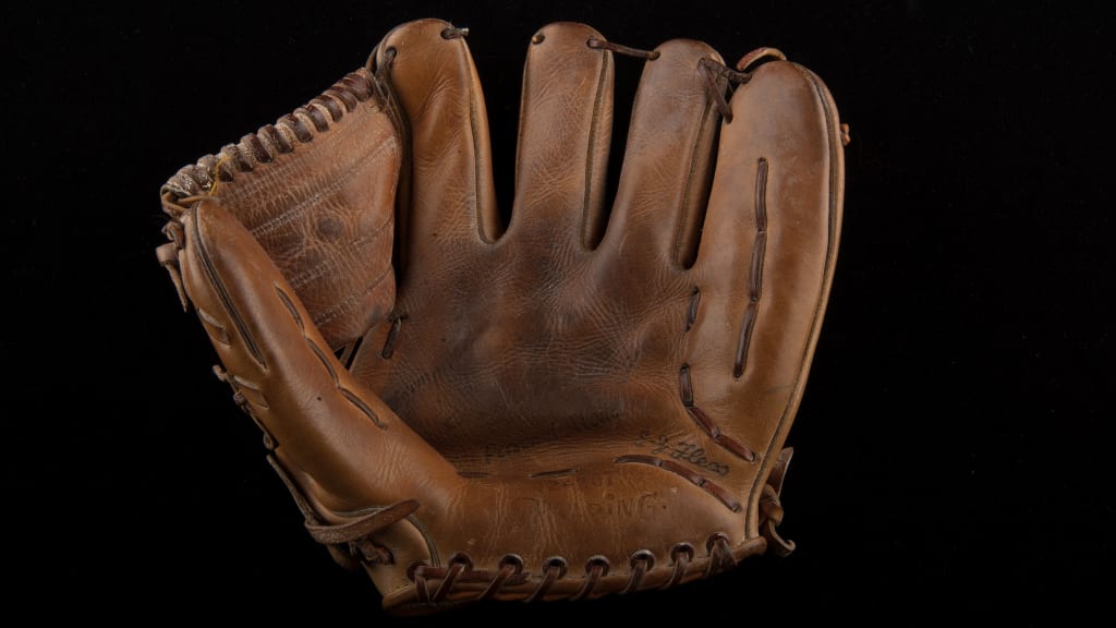 Fun facts: Ron Hansen's contribution to Rangers history dates back to when the team was known as the Washington Senators and played in the nation's capital. Hansen, who was at shortstop for the Senators on July 30, 1968, in Cleveland, grabbed Joe Azcue's line drive up the middle with Dave Nelson on first base and Russ Snyder on second. Both runners broke on Bruce Howard's full-count pitch to Azcue. Since Hansen was moving to his left as he corralled Azcue's smash, he had no trouble stepping on second base to retire Nelson. Chasing and tagging Snyder, who was racing toward second, was just as easy. This was about the only thing that went right for the Senators that night. Hansen struck out in all four of his plate appearances and Washington lost, 10-1. Depicted is the glove Hansen used to turn the first unassisted triple play in 41 years.