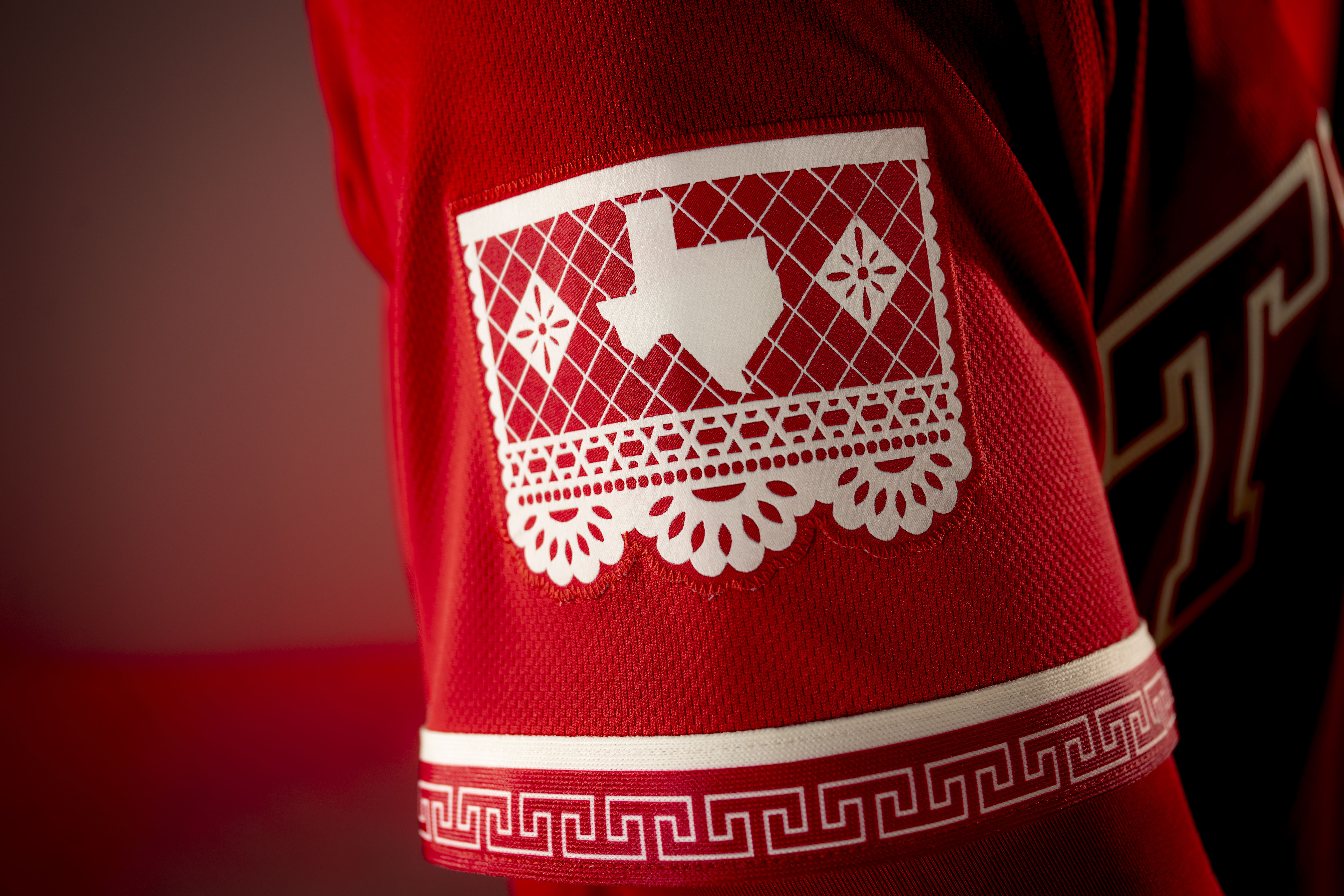 “It's a very significant form of intricate art design that we carry in Mexican culture,” Rincón said. “You see a lot of it in Mexico, and you see how it’s been referenced here with Tex-Mex culture. It embodies that spirit of celebration, but also joy. We wanted to bring it to life on the sleeve.”