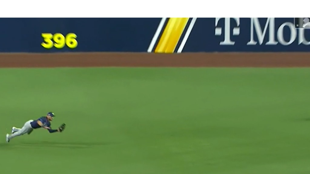 The outfielder -- who plays one of the deepest center fields in baseball -- raced 64 feet in just 3.8 seconds and went with a full Superman dive to make the grab.