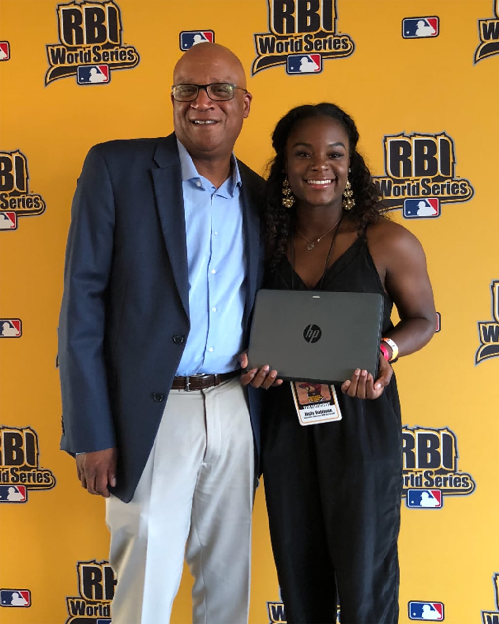 Robinson was presented with a laptop computer by David James, MLB’s vice president of baseball and softball development.