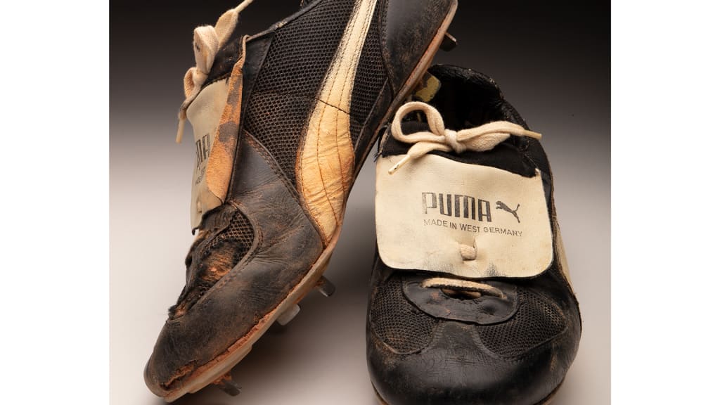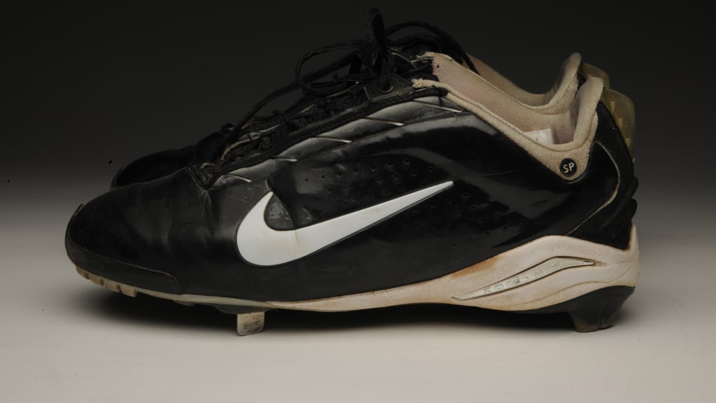 Fun facts: Red Sox pinch-runner Dave Roberts wore these spikes as he stole second base in Game 4 of the 2004 ALCS against the Yankees. His ninth-inning theft eventually led to an extra-inning 6-4 victory, the first of eight straight wins that gave the club its first World Series title in 86 years.