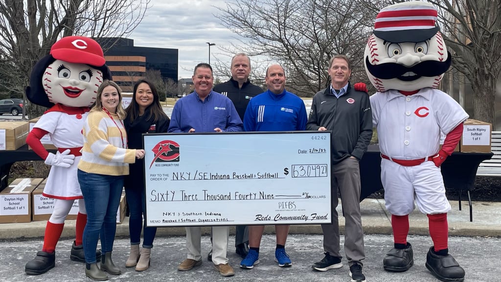 The Reds Community Fund, St. Elizabeth Healthcare and Pitch In For Baseball & Softball (PIFBS) distributed close to $65,000 worth of baseball and softball equipment to 30 high school baseball and softball teams from Northern Kentucky and Southeast Indiana, as well as three youth sports organizations on Wednesday.