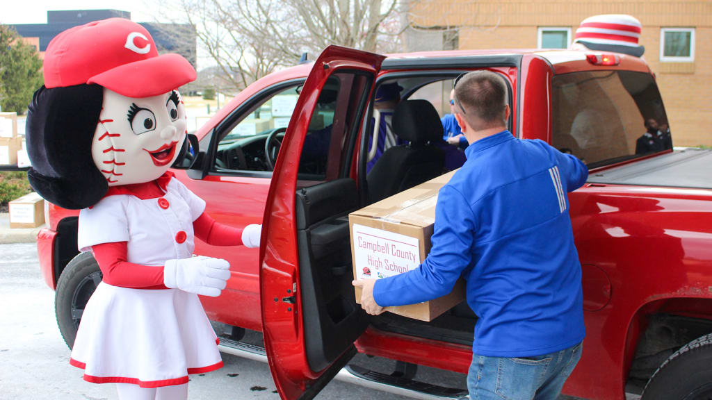 Athletic directors, head coaches and a few student-athletes from the schools and organizations pulled their vehicles up to the building while staff and volunteers from PIFBS, the Reds Community Fund, St. Elizabeth Healthcare and In-Game Sports helped distribute the equipment. Reds mascots Mr. Redlegs and Rosie Red assisted as well.
