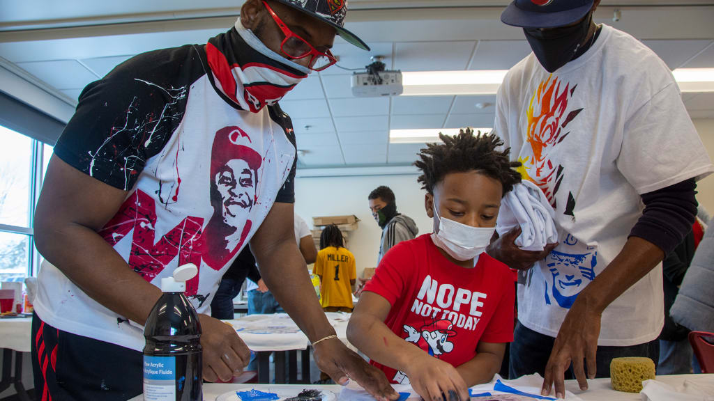 “Brent shared some images from a handful of group art projects that he’s hosted throughout the city as a part of Black History Month and asked if we wanted to work together at the Academy,” Reds Community Fund executive director Charley Frank said. “It seemed like a natural fit and it didn’t take long for our staff to recruit a dozen kids for the two sessions.”