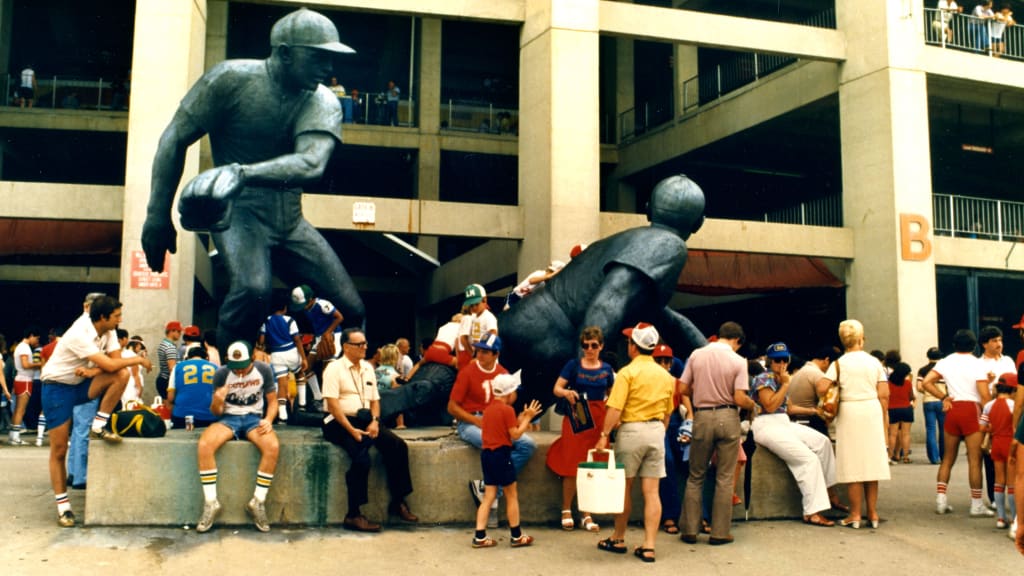 Fans used the statues as a place to meet friends before games. Selfies weren't taken simply because the technology didn't exist back then.