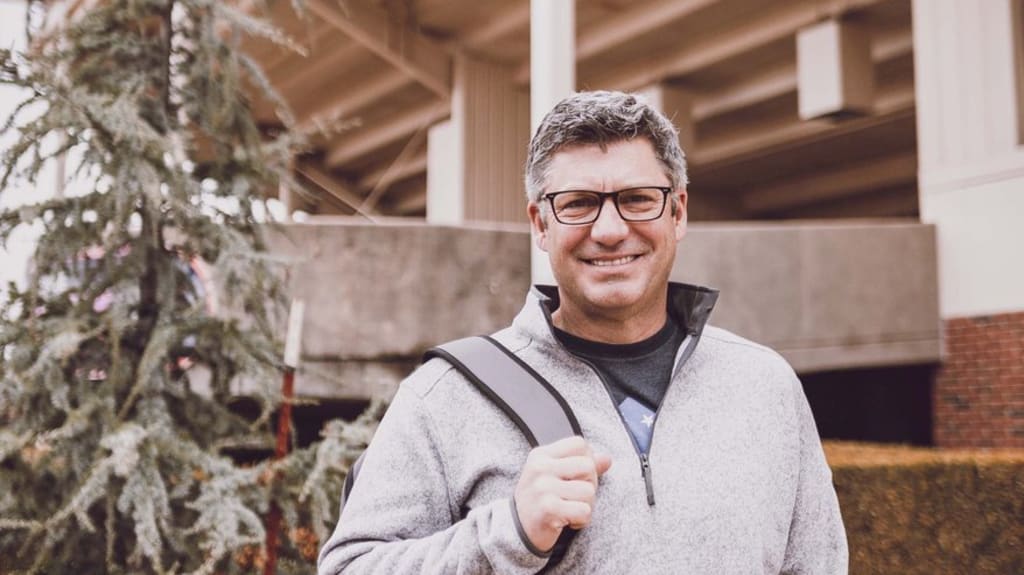 Though he's a little older and grayer, he even looks the part as he's gone back to finish his degree. (The real question: How long until he's rocking sweatpants to class?)