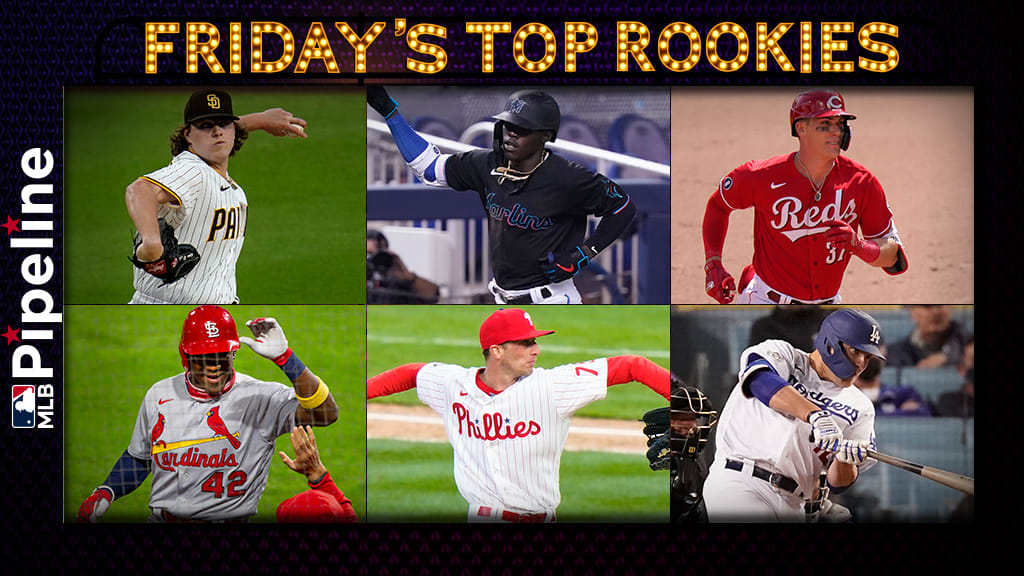 \n","providerName":"Twitter","providerUrl":"https://twitter.com","thumbnail_url":null,"type":"oembed","width":550,"contentType":"rich"},{"__typename":"Markdown","content":"The fifth-ranked Padres prospect walked Mookie Betts on nine pitches to begin the game, but the Dodgers' star was quickly erased from the basepaths after Corey Seager grounded into a 5-6-3 double play. Weathers got Justin Turner to pop out to second to escape the inning unscathed.\n\nThe 21-year-old began the second with another walk -- this time to Will Smith -- but a flyout to left by Max Muncy and a punchout of Chris Taylor on three pitches quickly left Smith at first with two outs. A base hit to right by Zach McKinstry moved Smith into scoring position, but Luke Raley grounded out to second to end the threat.","type":"text"},{"__typename":"Markdown","content":"Weathers retired the next four batters before Smith reached again on a fielding error by first baseman Eric Hosmer. The southpaw promptly whiffed Max Muncy on an 86.8 mph changeup before being removed from the game. Weathers was pulled after 79 pitches -- 46 were strikes.","type":"text"},{"__typename":"Markdown","content":"Chisholm Jr., turned in his third multi-hit effort of the season to help propel Miami to a 4-1 victory over the Giants at loanDepot park. The fourth-ranked Marlins prospect went yard for the third time this season when he won a seven-pitch at-bat against Anthony DeSclafani by mashing an 86 mph hanging slider to right-center to get the Marlins on the board.\n\nMLB Pipeline's No. 58 overall prospect also legged out an infield single in the second when he drilled a sharp ground ball to short that Brandon Crawford could not field cleanly. The 23-year-old's 55-grade speed was on display as he beat out the throw. Friday marked Chisholm's third multi-hit effort in 11 games this season, and he is batting .294/.405/.706 with six RBIs.","type":"text"},{"__typename":"Video","contentDate":"2021-04-17T00:37:35.123Z","preferredPlaybackScenarioURL({\"preferredPlaybacks\":\"mp4AvcPlayback\"})":"https://mlb-cuts-diamond.mlb.com/FORGE/2021/2021-04/16/37231c3f-c3c7b195-271b173f-csvm-diamondx64-asset_1280x720_59_4000K.mp4","type":"video","description":"Jazz Chisholm Jr. drills a line drive to right field that hits the wall and bounces over for a solo home run, tying the game at 1 in the 5th","displayAsVideoGif":false,"duration":"00:00:35","slug":"anthony-desclafani-in-play-run-s-to-jazz-chisholm-jr","tags":[{"__typename":"InternalTag","slug":"season-2021","title":"Season 2021","type":"season"},{"__typename":"GameTag"},{"__typename":"PersonTag","slug":"playerid-665862","title":"Jazz Chisholm Jr.","person":{"__ref":"Person:665862"},"type":"player"},{"__typename":"TeamTag","slug":"teamid-146","title":"Miami Marlins","team":{"__ref":"Team:146"},"type":"team"},{"__typename":"TaxonomyTag","slug":"hitting","title":"hitting","type":"taxonomy"},{"__typename":"TaxonomyTag","slug":"highlight","title":"highlight","type":"taxonomy"},{"__typename":"TaxonomyTag","slug":"in-game-highlight","title":"in-game highlight","type":"taxonomy"},{"__typename":"TaxonomyTag","slug":"home-run","title":"home run","type":"taxonomy"},{"__typename":"TaxonomyTag","slug":"yahoo-in-game","title":"Yahoo In-Game","type":"taxonomy"},{"__typename":"TaxonomyTag","slug":"2-yahoo-mlb-ads-feed","title":"2-Yahoo MLB Ads Feed","type":"taxonomy"},{"__typename":"TaxonomyTag","slug":"send-to-news-mlb-feed","title":"Send To News MLB feed","type":"taxonomy"},{"__typename":"TaxonomyTag","slug":"mlb-top-prospects","title":"MLB Top Prospects","type":"taxonomy"},{"__typename":"TaxonomyTag","slug":"young-stars","title":"Young Stars","type":"taxonomy"},{"__typename":"TaxonomyTag","slug":"eclat-feed","title":"Eclat feed","type":"taxonomy"},{"__typename":"TaxonomyTag","slug":"international-feed","title":"International Partner feed","type":"taxonomy"},{"__typename":"TaxonomyTag","slug":"yahoo-fantasy","title":"Yahoo Fantasy","type":"taxonomy"},{"__typename":"TaxonomyTag","slug":"1-yahoo-fantasy-feed","title":"1-Yahoo Fantasy Feed","type":"taxonomy"}],"thumbnail":{"__typename":"Thumbnail","templateUrl":"https://img.mlbstatic.com/mlb-images/image/private/{formatInstructions}/mlb/hmht2mbzjzwtvid3bsid"},"title":"Jazz Chisholm Jr.'s solo home run","relativeSiteUrl":"/video/anthony-desclafani-in-play-run-s-to-jazz-chisholm-jr"},{"__typename":"Markdown","content":"**Here are more top rookie performances from Thursday's games:**","type":"text"},{"__typename":"Markdown","content":"**Luis Campusano, C, SD** (MLB No. 38) \nThe third-ranked Padres prospect put his club on the board with an RBI knock the other way in the second inning. With two on and two out, Campusano found some grass in right field on a first-pitch fastball from Walker Buehler that scored Manny Machado from third. It marked Campusano's first career RBI -- and it came in his seventh game of the season. Gameday »","type":"text"},{"__typename":"Video","contentDate":"2021-04-17T02:59:47.8Z","preferredPlaybackScenarioURL({\"preferredPlaybacks\":\"mp4AvcPlayback\"})":"https://mlb-cuts-diamond.mlb.com/FORGE/2021/2021-04/16/4b54358b-e59075db-e796abbb-csvm-diamondx64-asset_1280x720_59_4000K.mp4","type":"video","description":"Luis Campusano singles on a line drive to right and Manny Machado scores to give the Padres a 1-0 lead in the bottom of the 2nd inning","displayAsVideoGif":false,"duration":"00:00:26","slug":"luis-campusano-singles-on-a-line-drive-to-right-fielder-mookie-betts-manny-macha","tags":[{"__typename":"InternalTag","slug":"season-2021","title":"Season 2021","type":"season"},{"__typename":"GameTag"},{"__typename":"PersonTag","slug":"playerid-669134","title":"Luis Campusano","person":{"__ref":"Person:669134"},"type":"player"},{"__typename":"TeamTag","slug":"teamid-135","title":"San Diego Padres","team":{"__ref":"Team:135"},"type":"team"},{"__typename":"TaxonomyTag","slug":"hitting","title":"hitting","type":"taxonomy"},{"__typename":"TaxonomyTag","slug":"high