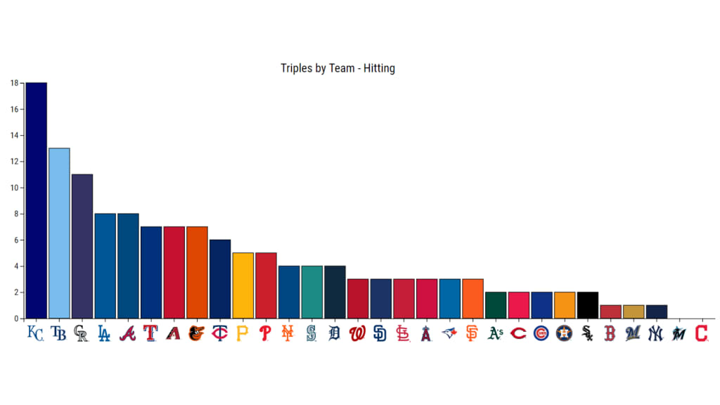 • The Royals’ 18 triples are as many or more than four teams -- the Astros, Blue Jays, Orioles and Cardinals -- had in all of 2018. In fact, the most recent season in which no team finished with 18 triples or fewer was 2000.