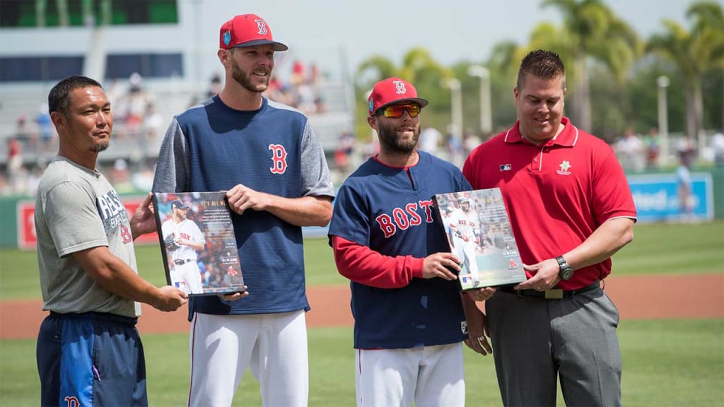 FORT MYERS, Fla. -- Red Sox second baseman Dustin Pedroia and left-hander Chris Sale were presented with canvas prints of their 2018 "It's All Me" public service ad for the Taylor Hooton Foundation prior to Wednesday's game against the Twins at JetBlue Park.