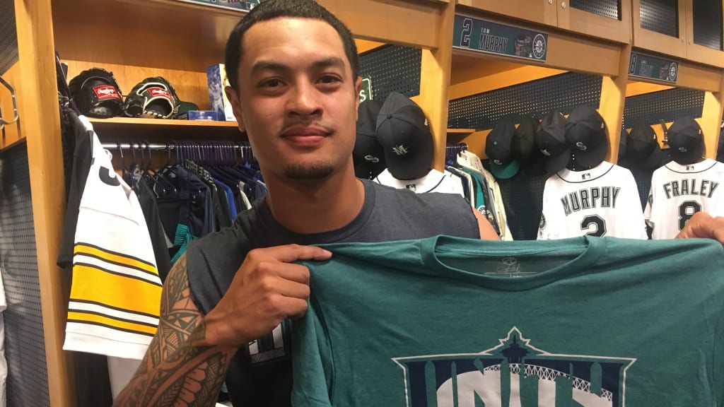 They're wearing Seattle-themed "Unity" T-shirts, courtesy of reliever Sam Tuivailala, who is supporting sales of the T-shirts to raise funds for impoverished citizens of the Dominican Republic. Through Big League Impact, sales of the Athletes Brand-designed T-shirts go toward helping those in need to obtain sustainable food and clean water, with funding also going toward the construction of baseball fields.