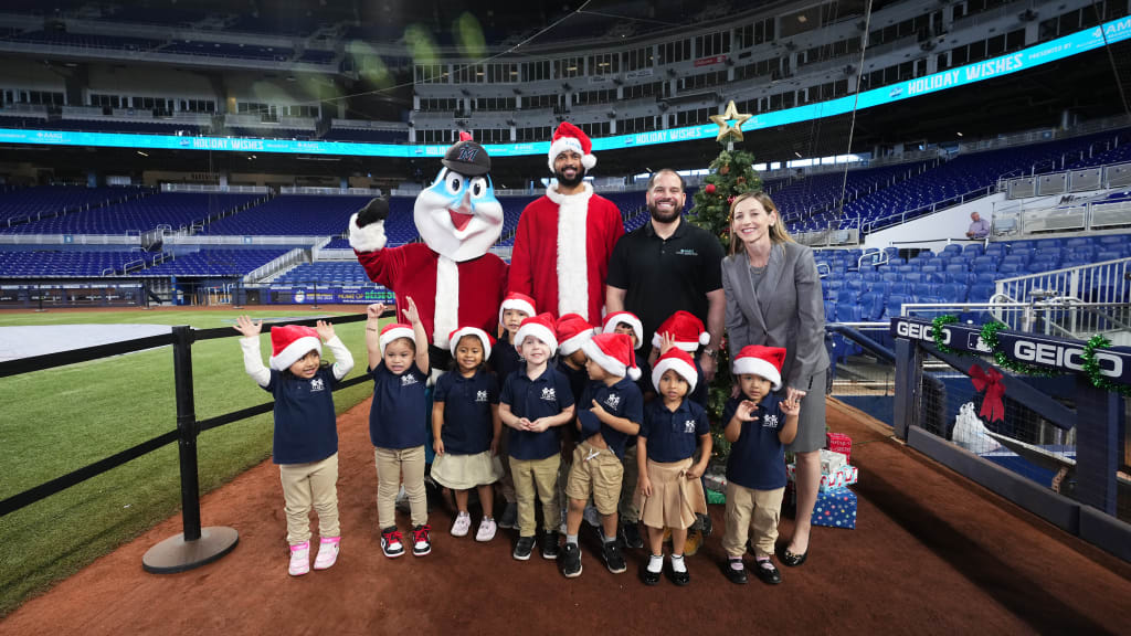 MIAMI -- Santa Claus got some help this year in the form of a lanky National League Cy Young Award winner. Sandy Alcantara, decked in Santa’s trademark coat and hat -- with Sandy Claus scripted across -- and baseball pants, distributed presents with Billy the Marlin on Monday morning at loanDepot park.