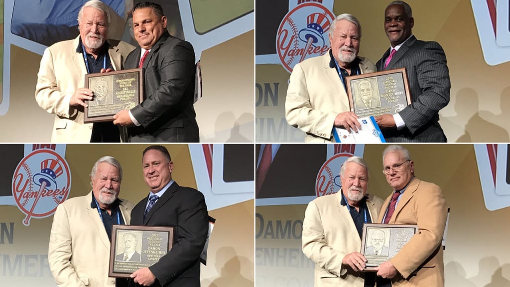 This year's quartet of honorees for the 35th edition of the event have made an unmistakable impact on the game, and they continue to do so. Awarded regionally, Damon Oppenheimer of the Yankees (West Coast Scout of the Year), Brad Sloan of the Red Sox (Midwest Scout of the Year), Danny Montgomery of the Rockies (East Coast Scout of the Year) and Sal Agostinelli of the Phillies (International Scout of the Year) have more than 120 years of combined scouting experience, have signed dozens of big leaguers across multiple decades and have helped their organizations reach the postseason many times.
