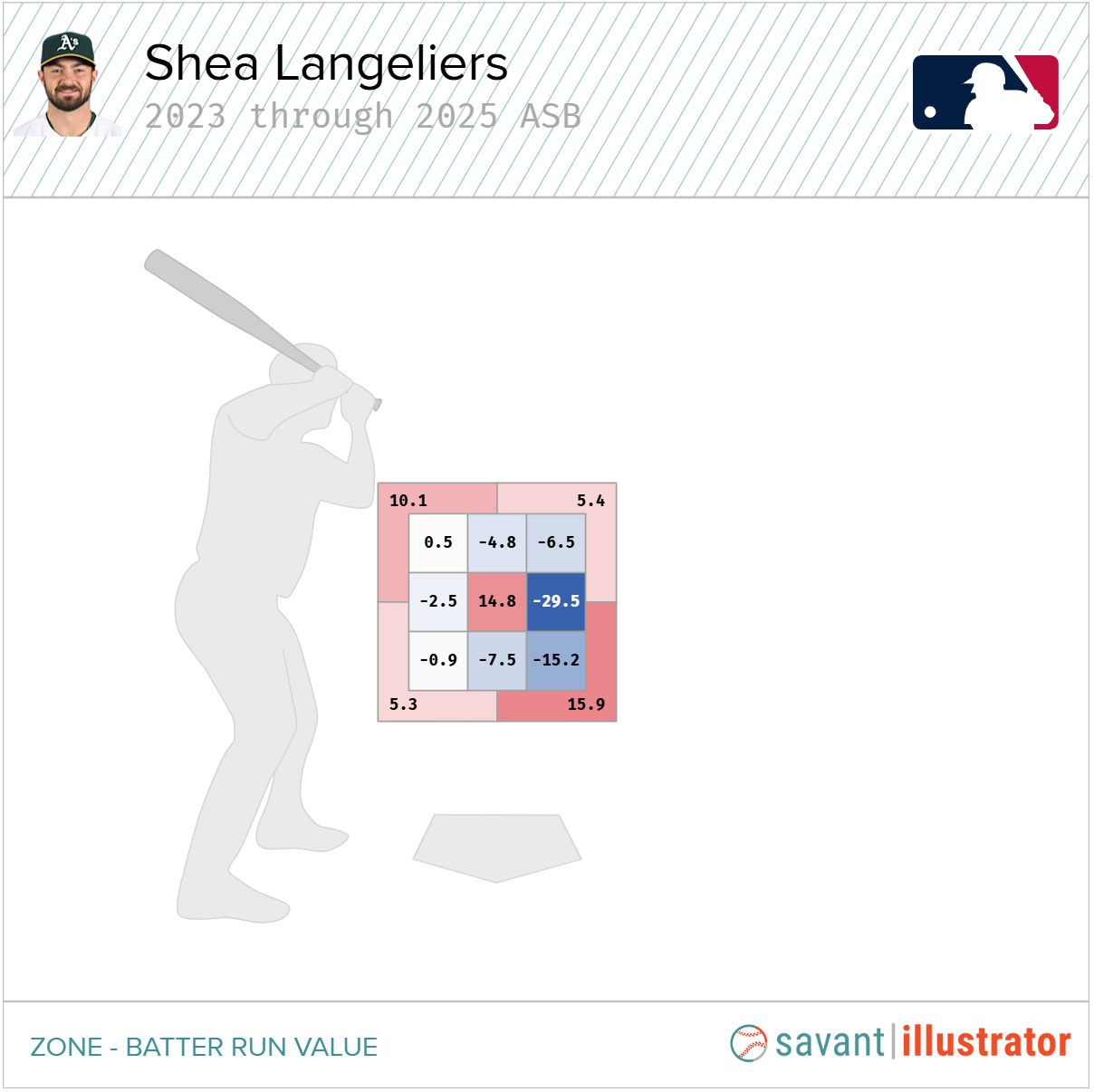 From the start of 2023 through the '25 All-Star break, Langeliers hit .245 with a .508 SLG, a 21.1% strikeout rate and a combined run value of -52 against in-zone pitches.