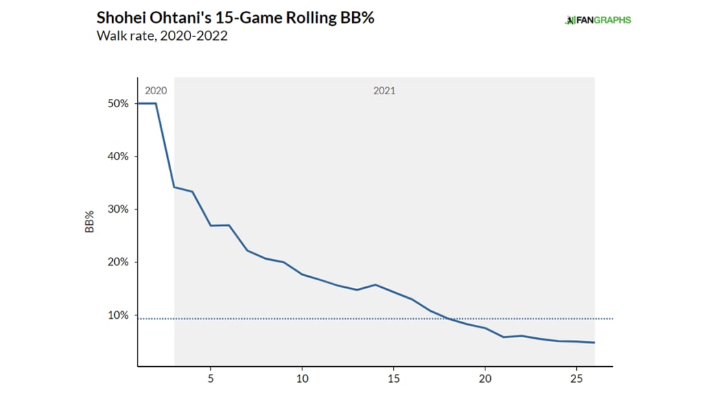 It’s that Ohtani, the pitcher, stopped walking people. He stopped walking just about anyone. It’s as simple as that. There was a thing he was relatively poor at, then he fixed it, and now it’s a strength. Simple to explain, if considerably harder to accomplish.