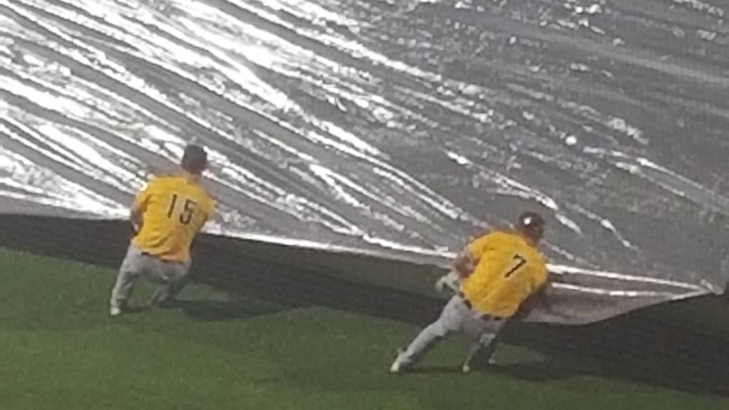 After torrential rain began to fall in Binghamton, N.Y., following the conclusion of the Erie Seawolves' contest against the Rumble Ponies, the grounds crew needed some extra muscle to help bring out the tarp due to the tricky weather. Who better than top Tigers prospects and current Erie players Spencer Torkelson and Dillon Dingler?