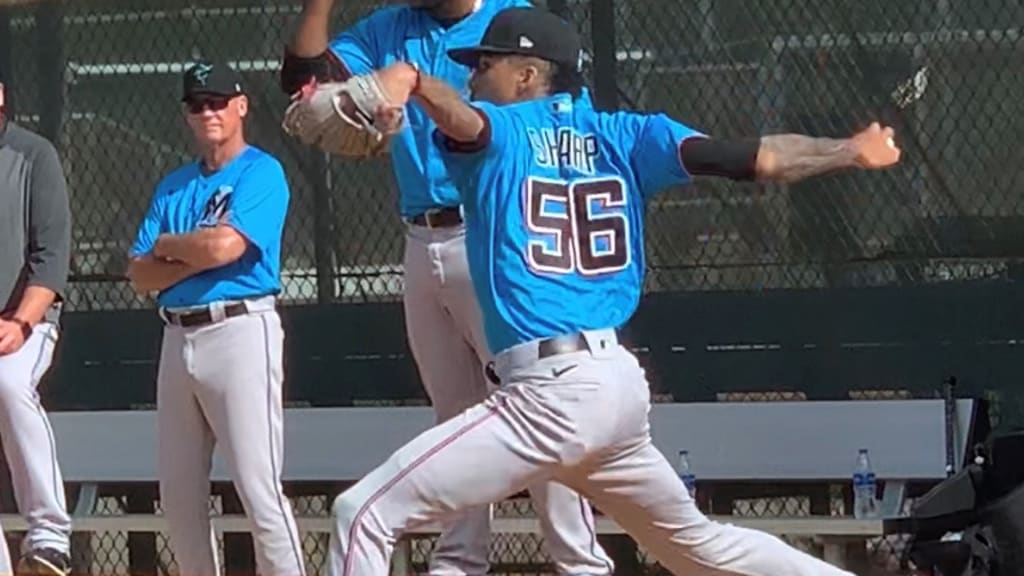 JUPITER, Fla. -- All eyes were on Marlins reliever Sterling Sharp on Wednesday afternoon on the back fields at the Roger Dean Chevrolet Stadium complex.