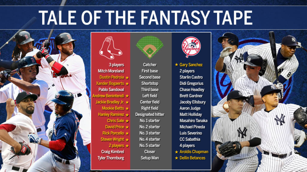 Few rivalries in baseball -- or any other sport, for that matter -- can match the history and intensity of the one between the New York Yankees and the Boston Red Sox. Before these storied franchises settle their 2017 competition on the field, we can get a head start on assessing them by comparing the fantasy value of their key players for the upcoming campaign.