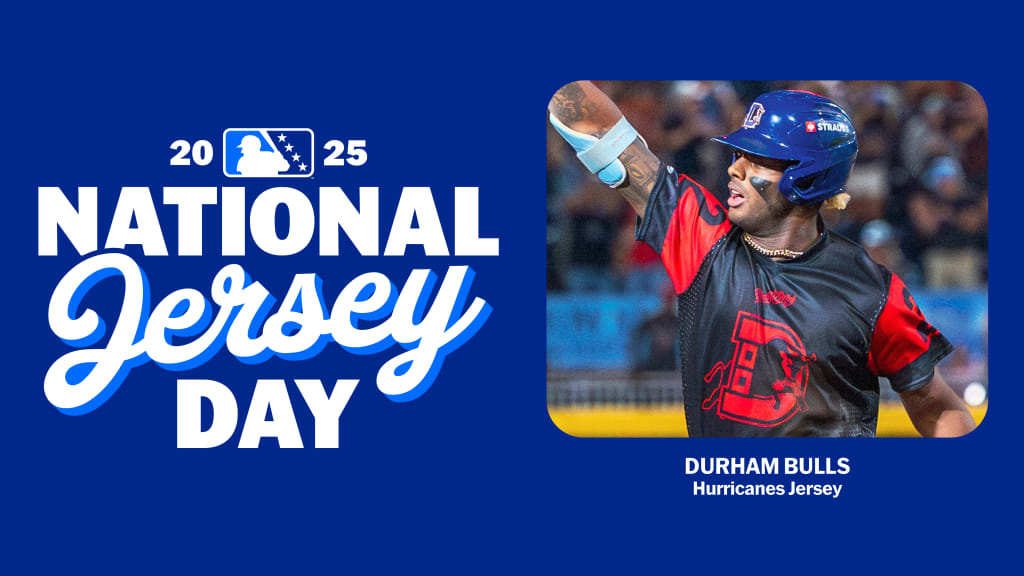 Each year Triple-A Durham celebrates their neighboring franchise, the Carolina Hurricanes, with Hockey Night. The Bulls create a new jersey each season, and the latest iteration really caught the attention of fans. Evoking the 2023 Stadium Series design, the Bulls jersey is black with the Durham logo at the center, but with the addition of red and black squares that are a nod to hurricane warning flags. While this jersey and other Rays prospects wore on September 12 is short sleeve, it keeps the hockey sweater in mind with thick stripes on the sleeves as well as the bottom. Although the jersey -- which was designed by the club’s director of creative services, Walmer Medina -- was especially popular this season, the Bulls intend to mix it up again next year for Hockey Night. Shop the look