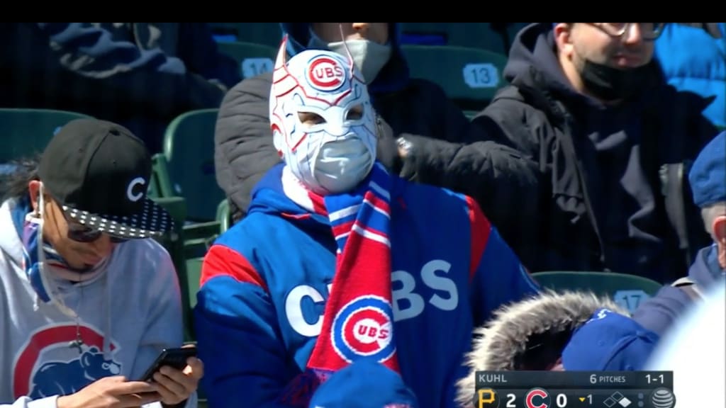 It was a welcome sight to see socially-distanced and masked fans back in attendance on Thursday, but the award for smartest, wisest and, yeah, strangest look goes to this Cubs supporter. Not only does this person have about 98 percent of their body covered -- something necessary for early season baseball -- but we’re starting to think this might be Batman’s daytime outfit. Hey, even Gotham’s Dark Knight (not to be confused with Matt Harvey) needs a break to catch a game sometimes.