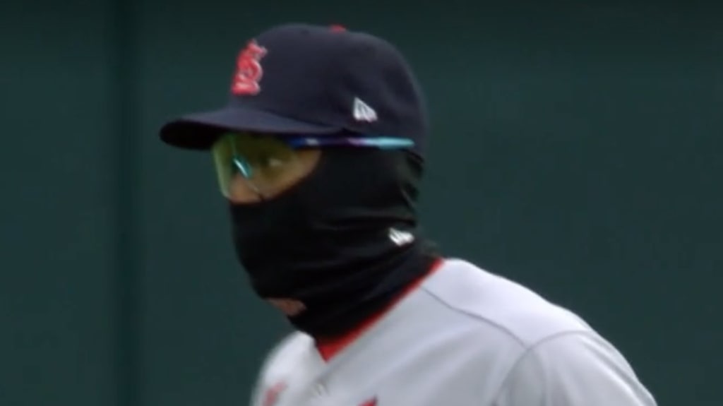 He wasn't the only one, either. Cardinals outfielder Justin Williams wore the same getup -- this time adding in some extremely retro-futuristic glasses. Honestly, he should keep this even when the weather warms up: