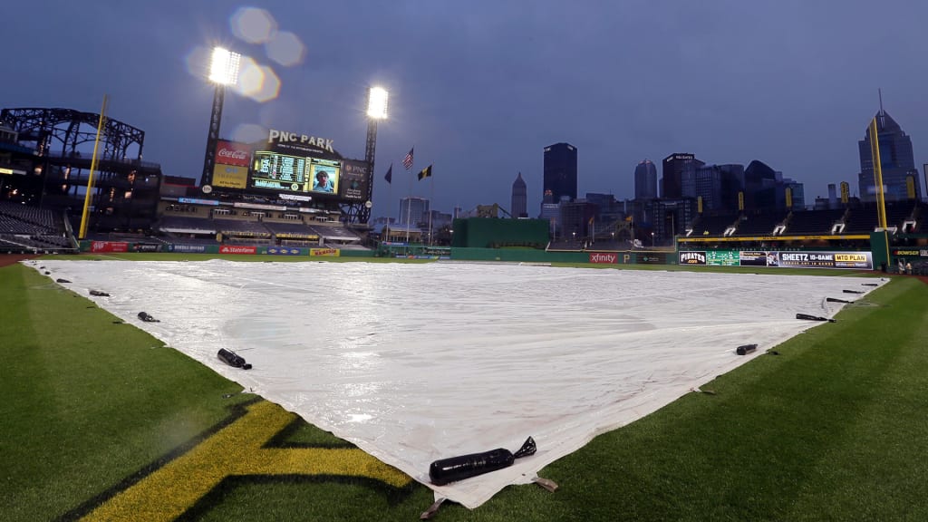 Rain fell for almost the entire day in Pittsburgh, and the grounds crew never got a chance to remove the infield tarp. Minutes before the 7:05 p.m. scheduled first pitch, the game was officially put in a delay, and it was called over an hour and a half later.