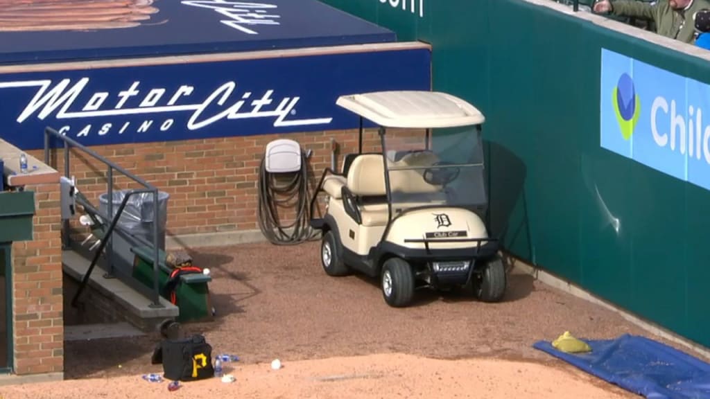 For now, it's a standard golf cart. The Tigers hope to have a more specialized cart ready for the next homestand. They're also expected to have sponsorship information available at that point.