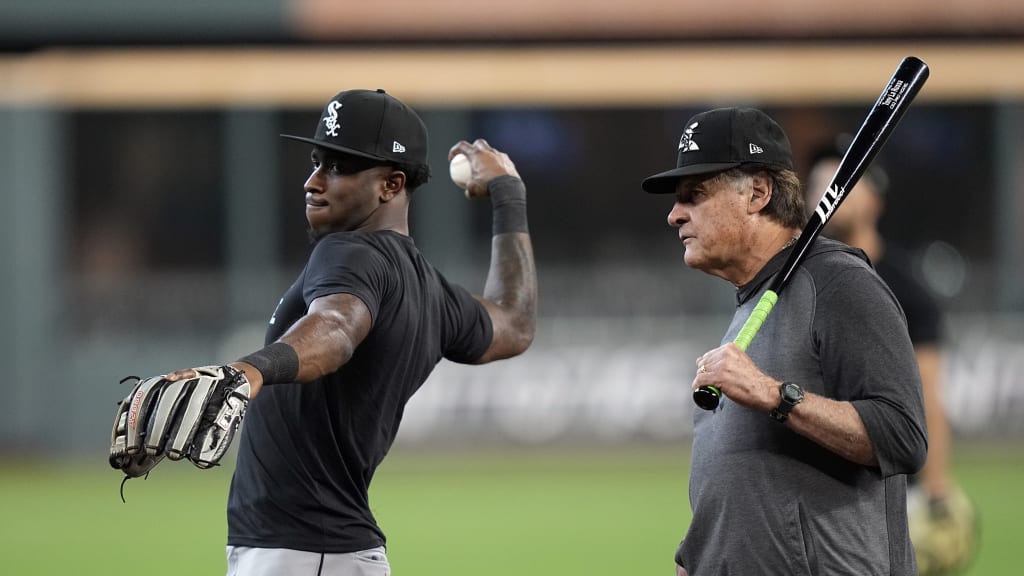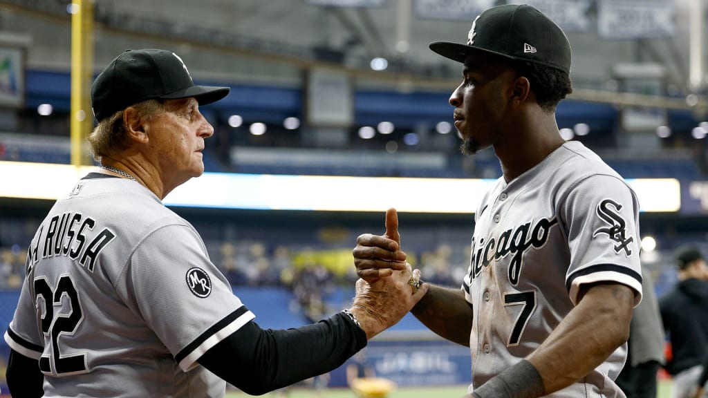 Tim Anderson talks to White Sox manager Tony La Russa.