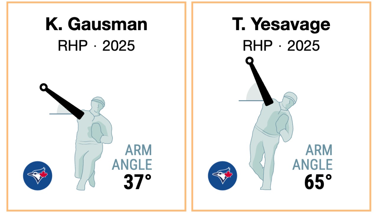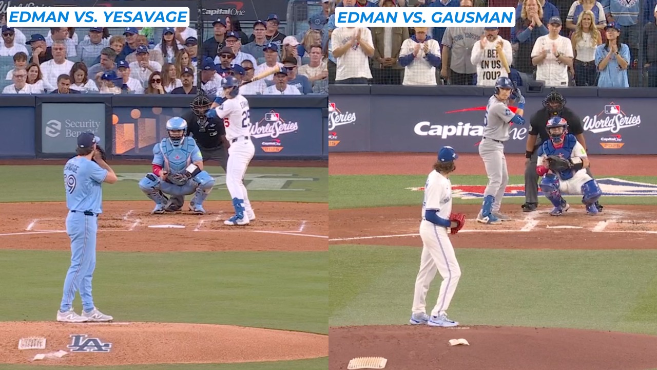 \n\n\n","providerName":"Twitter","providerUrl":"https://twitter.com","thumbnail_url":null,"type":"oembed","width":550,"contentType":"rich"},{"__typename":"Markdown","content":"Gasuman's splitter *is* also devastating against left-handed hitters. His numbers this postseason are almost as ridiculous as Yesavage's: 54% splitter usage against lefties with an .074 batting average allowed, 49% swing-and-miss rate and 29% strikeout rate.\n\nBut it goes back to the arm angle.\n\n*Seeing* Gausman's splitter is not the same as seeing Yesavage's splitter.\n\n\"I think it's mainly the angle that's the biggest difference,\" Edman said between facing Yesavage in Game 5 and seeing Gausman in Game 6. \"Yesavage's is more just like straight downhill, both the splitter and the slider. And then Gausman is more just kind of a traditional arm slot. The splitter is very deceptive as well. So I think just the arm slot from Yesavage is the big reason I hit righty.\"","type":"text"},{"__typename":"Image","caption":null,"contextualCaption":null,"contextualAspectRatio":"raw","credit":null,"contentType":null,"format":"jpg","templateUrl":"https://img.mlbstatic.com/mlb-images/image/upload/{formatInstructions}/mlb/u7ppjj6nqmemmtxsr74f","type":"image"},{"__typename":"Markdown","content":"Gausman's arm angle this postseason is almost twice as low as Yesavage's, a much more traditional three-quarters right-handed delivery. Standing in against him *is* like standing in against the other right-handers Edman is used to facing (albeit with a much better splitter), so it makes sense to bat from his typical left-handed side.\n\nAnd that lower arm slot from Gausman could make his pitches harder to pick up for Edman if he tried batting righty, since the ball would be coming from the third-base side of the rubber, behind Edman's back.\n\nGausman has great pitches, but he doesn't have the funky look of Yesavage and the funky movement that comes with it. And Edman has faced Gausman plenty of times before in his career, so he wasn't sparked to try something out of the ordinary like he was against a rookie he'd never seen before.","type":"text"},{"__typename":"OEmbed","html":"