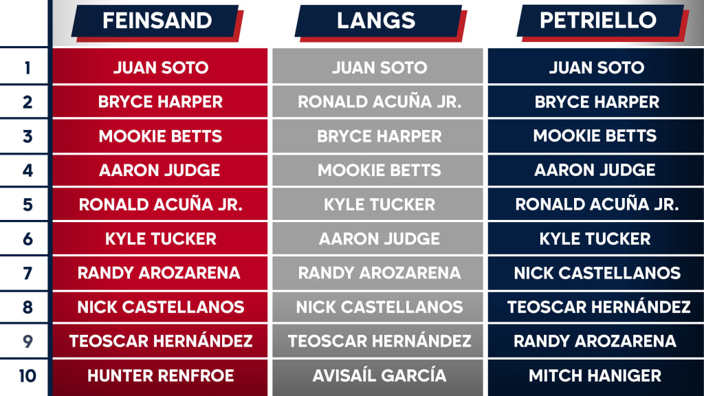 Simon: Let's talk about that. Bryce Harper is as low as third on these lists. Mookie Betts is as low as fourth. Aaron Judge is as low as sixth. All three are superstars. Is this the best position in baseball right now? Or at least the best top five?