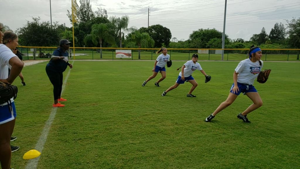 “These are elevated athletes. I’m training them like I would my own team. We want to give them the elite tools. Today, we worked on passed balls, bunt coverage, getting our body around the ball, popups, transfers and the communication between pitcher and catcher,” she said.