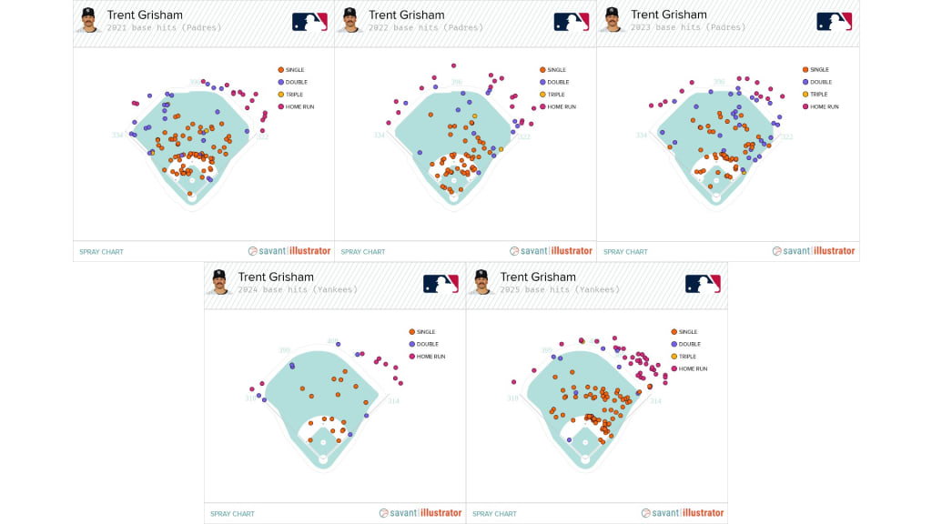 Grisham was one of seven left-handed hitters with at least 25 pulled home runs last season. The Yankees had three of those hitters -- Grisham, Bellinger and Jazz Chisholm Jr.