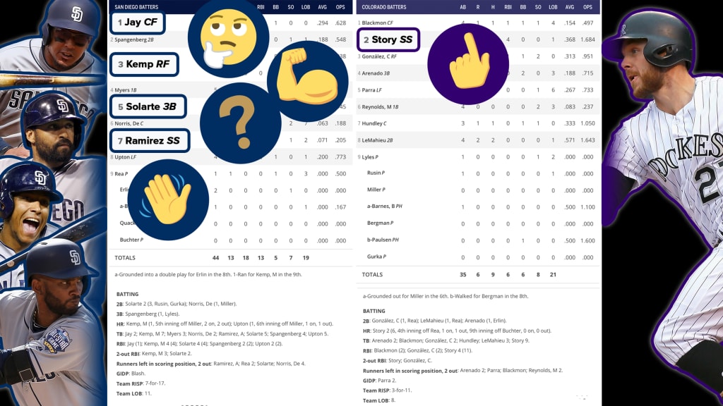 Story wasn't the only one to shine in this one, though. Veteran outfielder Matt Kemp never missed an opportunity to do damage against the Rockies, particularly at Coors Field, and led the Padres to a 13-6 victory to spoil Colorado's home opener.