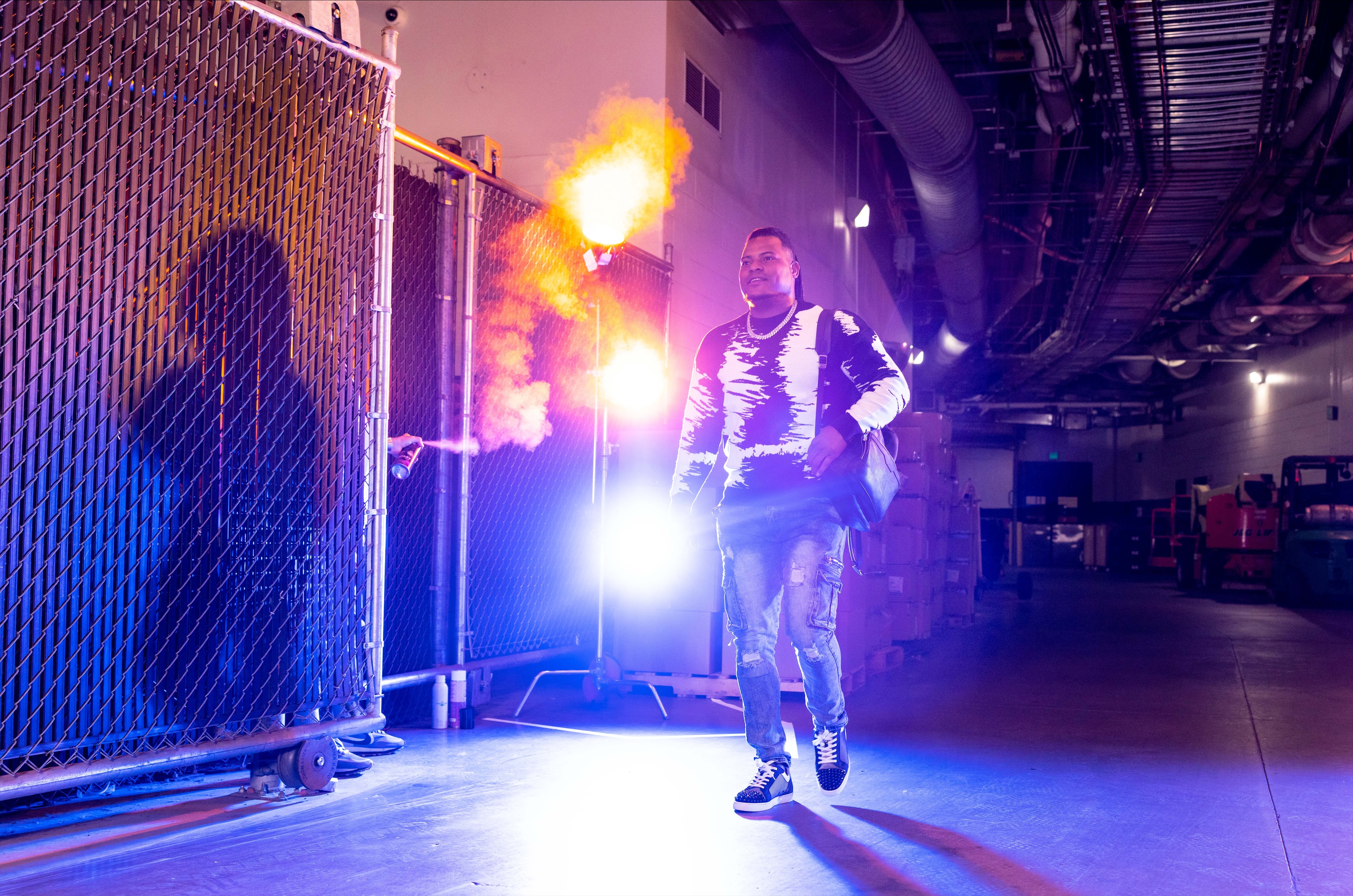 McKenzie’s take: So I see Framber’s got on the Cuban link [chain] right there, step one. That’s probably everyday wear for him. And then he’s got the cargo jeans with a nice sweater. But he’s got the shoes to match the sweater. So I’m liking where his head’s at.