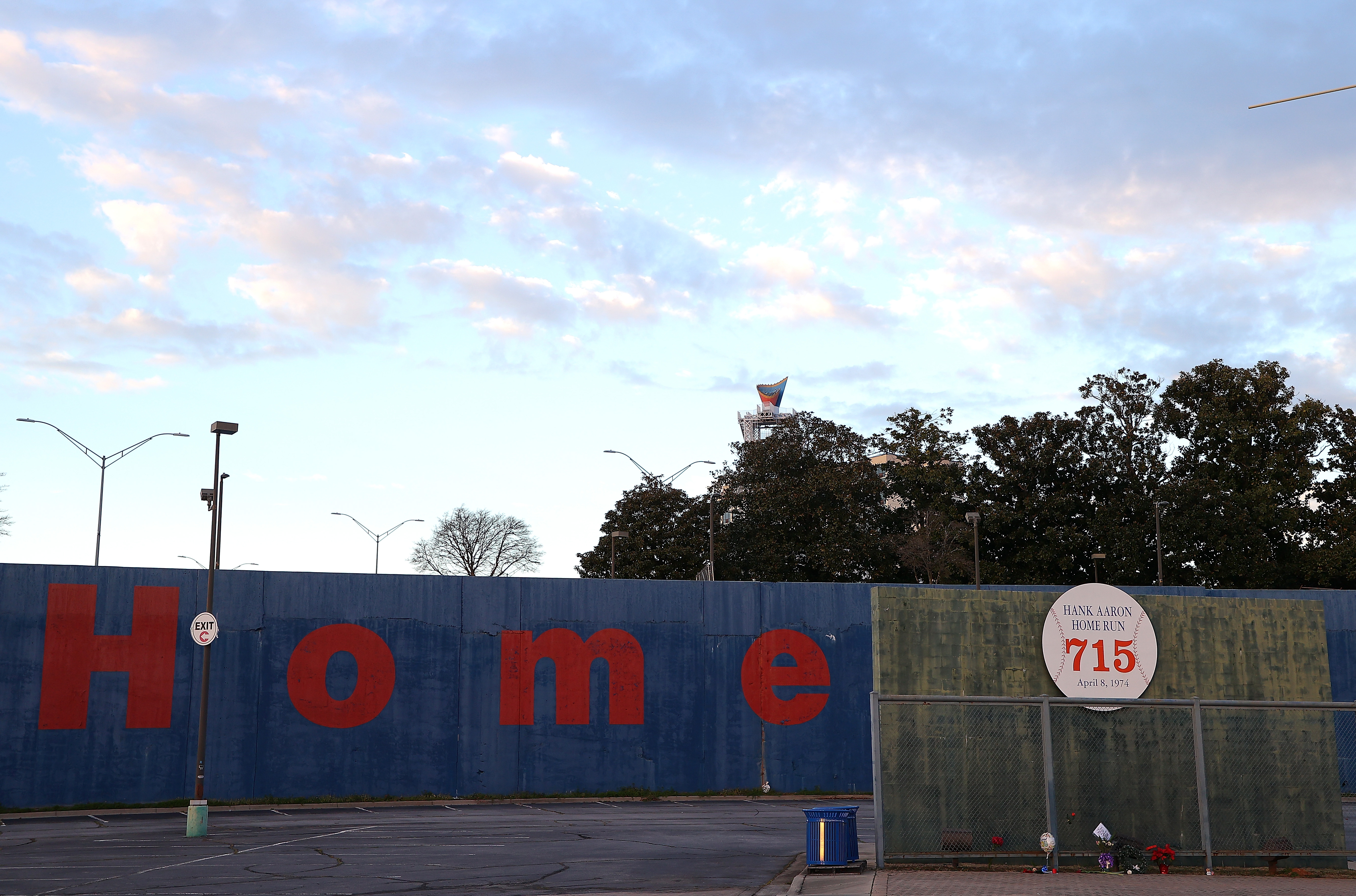 After the Braves moved across the street to Turner Field to begin the 1997 season, Atlanta-Fulton County Stadium became a parking lot. But a portion of the structure’s wall still remains and there has always been a lasting monument marking where Aaron’s historic home run landed.