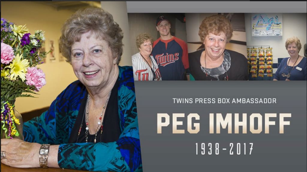 Imhoff, whose official role with the club was press box ambassador, was beloved by Twins employees and media members alike, and she warmly greeted those as they entered the press box at all three stadiums the Twins have played in since moving to Minnesota in 1961. The Twins named the dining room behind the press box "Peg's Café" when Target Field opened in 2010.