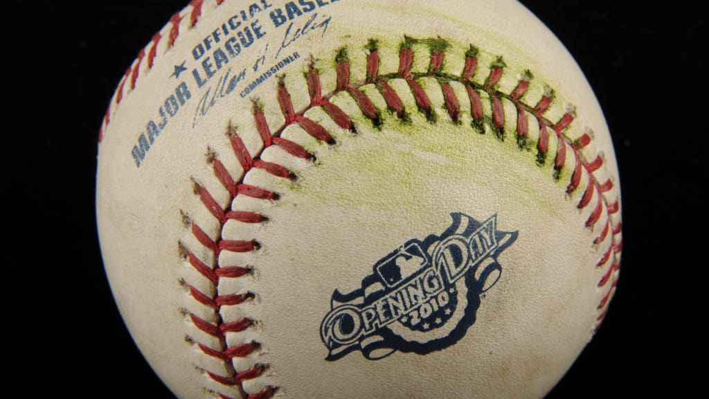 Fun facts: On April 12, 2010, Boston's Marco Scutaro lined this ball into center field for the first hit at the Twins' new ballpark, Target Field. Not since 1981, when the club last played at Metropolitan Stadium, had grass stains marked a ball at a Twins home game.