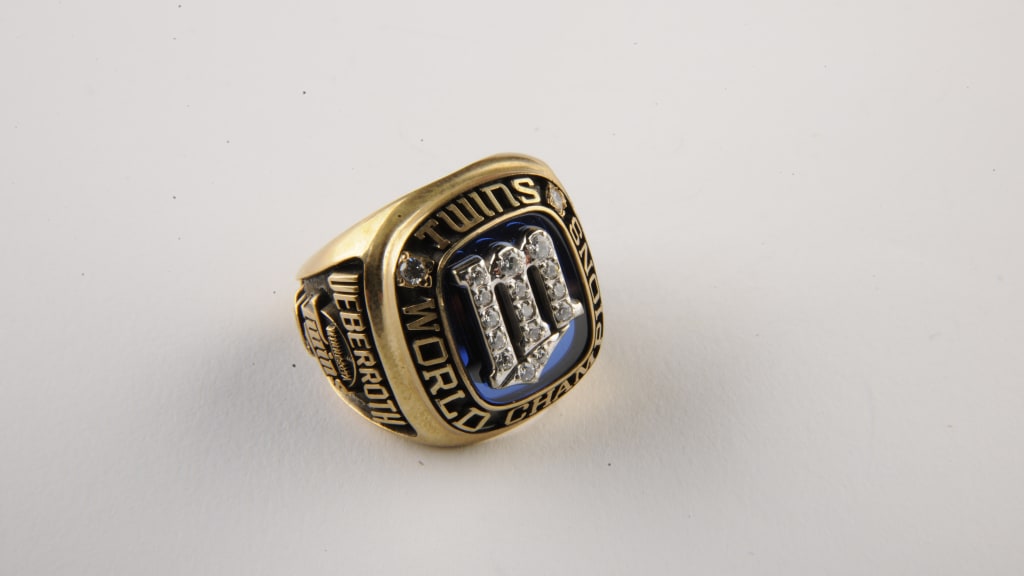 Fun facts: After Minnesota won the 1987 World Series, pitcher Bert Blyleven showed Twins president Jerry Bell his 1979 Pirates championship ring, and said, "I want one like this, but with an 'M' on it." The result was this ring, utilizing Minnesota's then-new "M" logo.