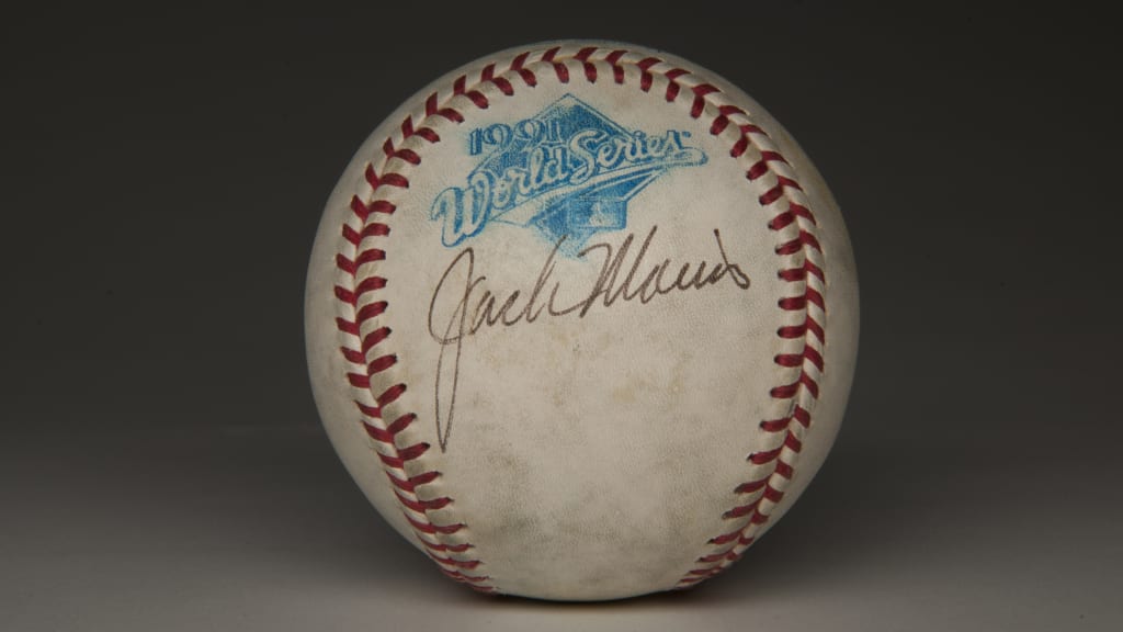 Fun facts: In Game 7 of the 1991 World Series, Twins ace Jack Morris took the mound and refused to come out of the game, pitching all 10 innings in the Twins’ 1-0 victory over the Braves. Morris used this ball during that extraordinary feat, completing baseball's first "worst-to-first" finish.