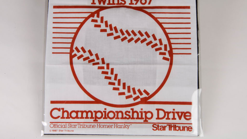 Fun facts: Before fans throughout baseball waved handkerchiefs, Twins fans were the first embraced their white “Homer Hankies.” Conceived by Minnesota Star Tribune promotions manager Terrie Robbins, 200,000 Homer Hankies were originally produced for Minnesota's 1987 postseason run. This is one of some 2.3 million Hankies distributed by the newspaper, birthing a baseball phenomenon and a Twins postseason tradition.