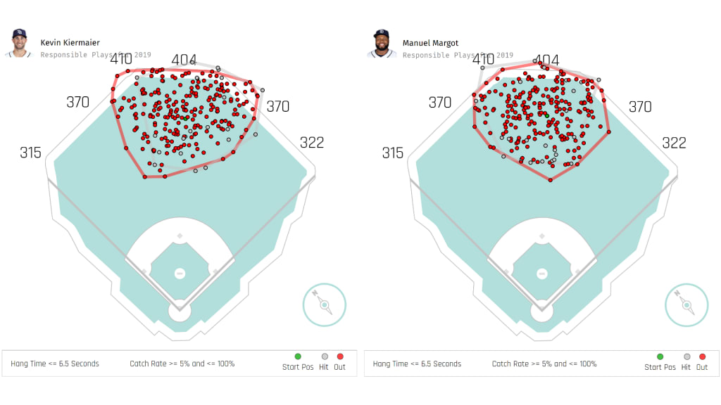 Statcast's outfield jump stat is used specifically for non-routine plays, where the fielder's actions during those first few seconds matter most. Kiermaier and Margot excelled on those. Between them, they made 18 catches last season -- nine apiece -- on plays with a catch probability of 50% or lower.