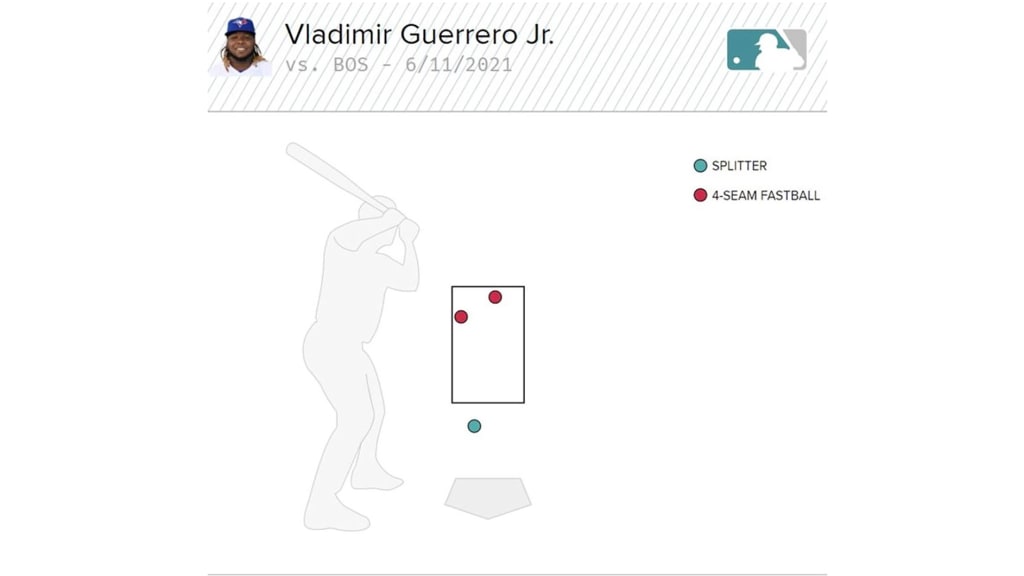 The home run is the trademark moment of the night, of course, because it shows just how small the margin of error is for opposing pitchers when they’re facing Guerrero. Boston reliever Hirokazu Sawamura set up Guerrero with a swinging strike on a splitter that fell down out of the zone, then a second swinging strike on a high fastball. Advantage Sawamura, right?