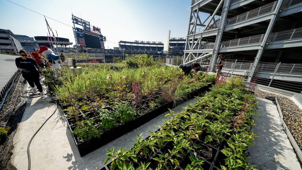 Additionally, the ballpark’s Giving garden—a 6,300‑square‑foot rooftop garden located by Section 105—has helped to reduce heat gain while producing fresh fruits and vegetables for Washington, D.C.’s Wards 7 and 8. A photo panel of the Giving Garden will be featured in the 2026 Smithsonian Gardens campus-wide exhibition series called Growing Tomorrow at the National Museum of American History beginning in May. Ballpark‑wide composting and recycling programs, bottle‑filling water stations further support waste reduction efforts, while the Nationals Park’s stormwater filtration system helps protect the nearby Anacostia River. For fans, Nationals Park is also conveniently accessible to public transportation via Metro and buses, and signage throughout the concourses helps to educate fans on the Nationals’ sustainability initiatives. Fans coming to the stadium by bicycle can park their bike in one of the more than 250 bike racks around the ballpark or have their bike valeted for free in Garage C. There are also four Capital Bikeshare docks within 10 minutes of the ballpark.
