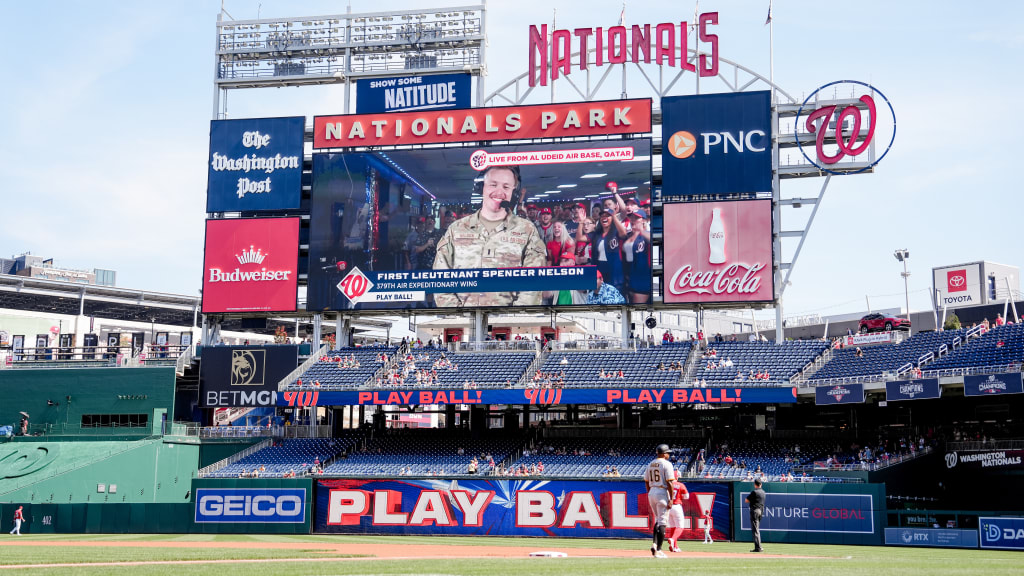 Several service members stationed at Al Udeid recorded messages for their loved ones, which were played live throughout the game between innings while their loved ones watched from a Nationals Park suite.