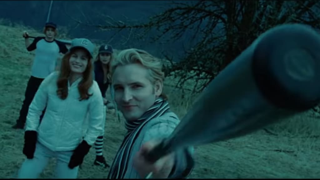 "But Mike," I hear you saying, "this isn't a baseball movie. This is a sappy teenage vampire/werewolf romance movie." Which is fair, but ignores the fact that there is a full six-minute baseball scene in this bad boy. And when you think about it, how much baseball is really in those other romances, "Bull Durham" or "For Love of the Game"? How many minutes of baseball action are necessary for something to be considered a baseball film, anyway?