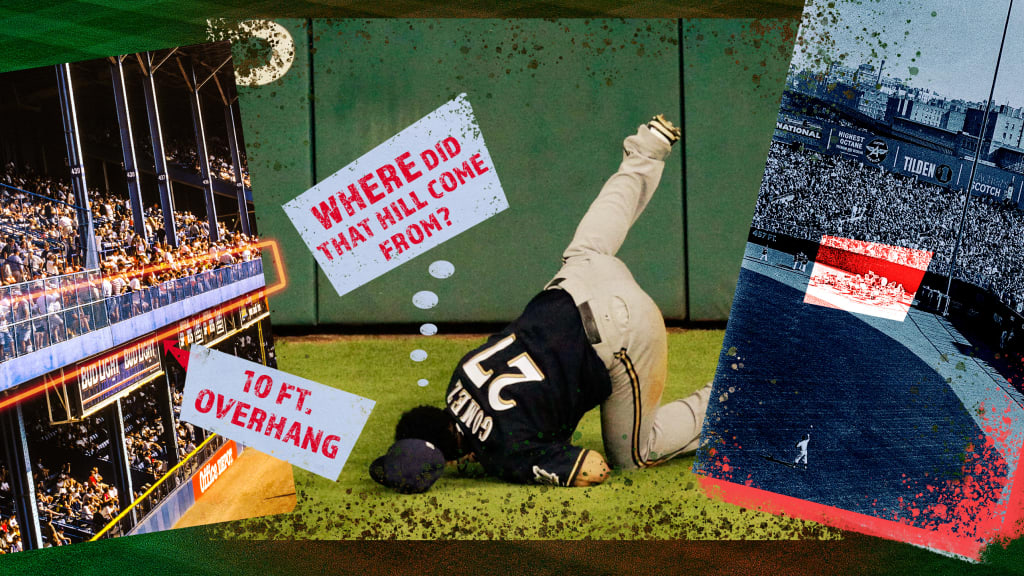 As an ode to Crosley Field's funky sloped outfield in the middle of the 20th century, Astros executive Tal Smith urged his team to erect a 30-degree slope in center field of the new Minute Maid Park. And they did. From 2000-16, there was a 90-foot-wide hill leading up to the outfield fence. It made for some, um, interesting photographs.
