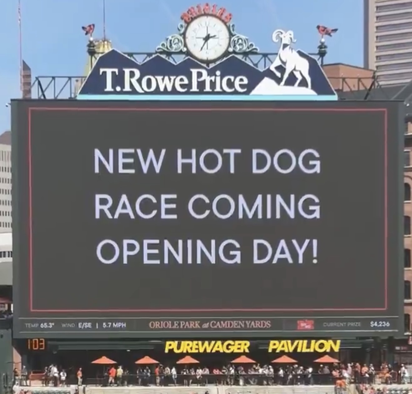 \n\n","providerName":"Twitter","providerUrl":"https://twitter.com","thumbnail_url":null,"type":"oembed","width":550,"contentType":"rich"},{"__typename":"Markdown","content":"The new PureWager Pavilion is located underneath the center-field videoboard. The covered patio space can be rented out by private groups of up to 300 guests. When the space is not booked, it will be open to all fans.\n\nThe Truist Club, Camden Yards' first premium club, is located behind home plate. The 350-seat location comes with VIP parking, a private entrance to the ballpark, exclusive events and experiences and an all-inclusive dining room with a rotating menu.\n\nA new right-field bar is being constructed on the flag court in partnership with Corona, and it will be open after the All-Star break this year. The open-air, wraparound bar will be open to the public.","type":"text"},{"__typename":"Image","caption":null,"contextualCaption":null,"contextualAspectRatio":null,"credit":null,"contentType":null,"format":"jpg","templateUrl":"https://img.mlbstatic.com/mlb-images/image/upload/{formatInstructions}/mlb/h6mp8pbzqskgu16wkgak","type":"image"},{"__typename":"Markdown","content":"The club level has been fully redesigned with elevated decor, lighting and furniture. There are also two new climate-controlled bars on the first- and third-base sides. The Home Plate Club on the club level was renovated during the offseason as well.\n\nThe ballpark was equipped with Internet Protocol Television, which delivers TV programming, live channels and video-on-demand over an internet connection. Now, the more than 600 televisions at Camden Yards will show live action, replays and stats, so fans won't miss the action while away from their seats.\n\nTo support all of the new technology, the Orioles built a new control room, which doubled in overall footprint.\n\nAs for in-game entertainment, the O's are introducing a new Crab Shuffle, a new Hot Dog Race, upgraded hype videos and more features. A group of about 15 Camden Crew members will be stationed around the ballpark to assist with in-game promotions, crowd engagement and on-field entertainment.","type":"text"},{"__typename":"Image","caption":null,"contextualCaption":null,"contextualAspectRatio":"raw","credit":null,"contentType":null,"format":"jpg","templateUrl":"https://img.mlbstatic.com/mlb-images/image/upload/{formatInstructions}/mlb/q4hxhrfiojeegoxy0lx4","type":"image"},{"__typename":"Markdown","content":"Fans will get early access to the ballpark to watch batting practice before all night games Monday through Thursday (except Aug. 20). Gates A and H will open 2 1/2 hours before first pitch for all ticket holders.\n\n**Ticket offers and promotions**\n\nParty at the Yard Fridays and Family Sundays are returning, as have Birdland Memberships.\n\nThe Orioles will now sell $19 tickets (including all fees) for Monday through Thursday games (excluding Opening Day), with seating options in the lower-level terrace boxes.\n\nThe Kids Home Run Porch in left field has returned and is now presented by Under Armour, with a giant cleat statue on the platform.","type":"text"},{"__typename":"Markdown","content":"**Orioles Team Store**\n\nThe main location of the Orioles Team Store in the warehouse on Eutaw Street has expanded offerings.\n\nOn the club level, there will be a renovated store location at Section 244 and a new one at Section 216, with the latter being 1 1/2 times the size of the original store. Premium brands will be featured in these locations as well.\n\nThe Orioles are introducing an exclusive eShop for fans in suites and the Truist Club. Guests in those locations can get O's gear delivered to their seats or place an order to be picked up at either the Eutaw Street location or the store at Section 216. More information is available at OriolesMobileShop.com.","type":"text"},{"__typename":"OEmbed","html":"