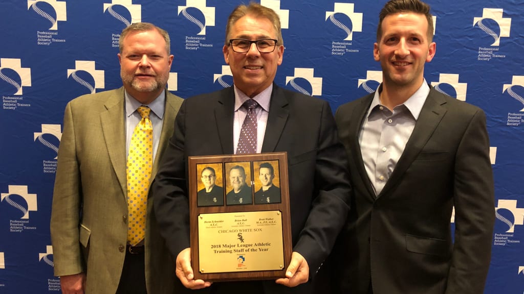 Herm Schneider, Brian Ball and Brett Walker of the Chicago White Sox have been named the 2018 Major League Baseball Athletic Training Staff of the Year by the Professional Baseball Athletic Trainers Society (PBATS).u5:p