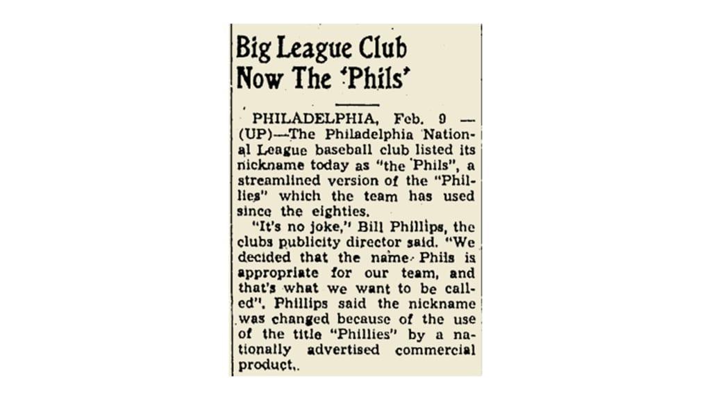 Eighty years ago, the Phillies shortened their name to Phils. The season was the 60th in franchise history and came on the heels of nine consecutive losing seasons of which the final four saw the team suffer over 100 defeats.
