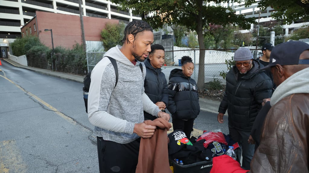 It began in November with Benson’s nonprofit organization, Future is Near, teaming up with SafeHouse Outreach in Atlanta for its annual Walk Through the Streets. Joined by friends and former teammates, Benson took to the streets of downtown Atlanta to hand out blankets, sweatshirts, gloves and other cold weather gear to the homeless and less fortunate.