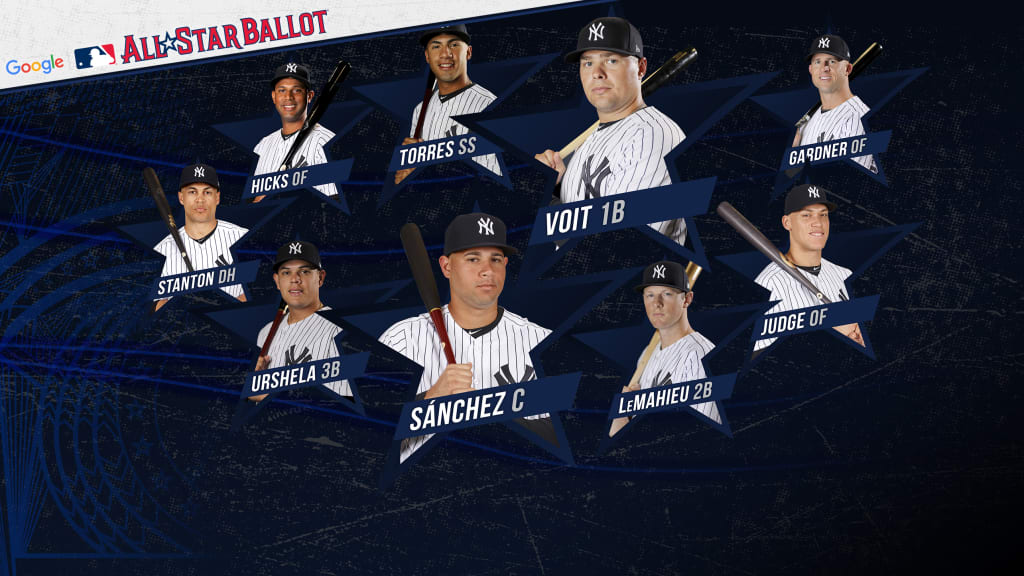NEW YORK -- Catcher Gary Sánchez and first baseman Luke Voit continue to hold leads at their respective positions in the updated voting for next month's All-Star Game, while second baseman DJ LeMahieu and shortstop Gleyber Torres are among the hopefuls within striking distance of punching a ticket to Cleveland.
